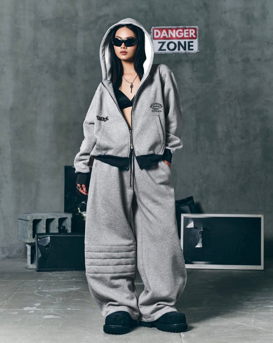 Padded Gear Zip-Up Hoodie – Grey Melange